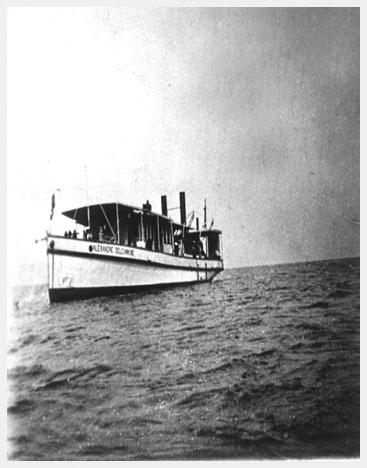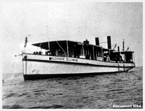 A quai, le vapeur "Général Tombeur" qui reliait le sud du lac Kivu (ici à Bukavu) à Goma situé tout au nord. En approche, au milieu de la baie, le "Vengeur".