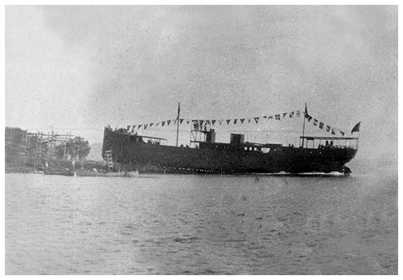 La coque lancée le 24 août 1916 (mis en service par le C.F.L ).